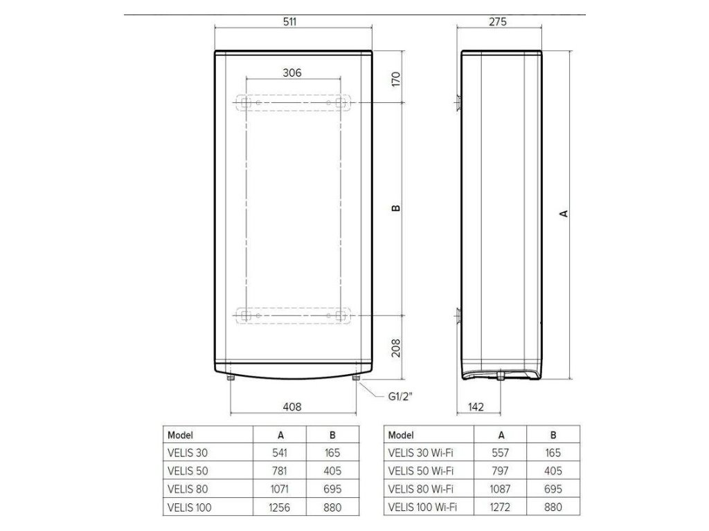 Plochý elektrický zásobníkový ohřívač vody VELIS PRO je navržen pro použití ve vodě s nízkým obsahem vápníku a musí být trvale připojen k elektřině bez možnosti spínání levného tarifu. Je náhradou ohřívače VELIS EVO.
