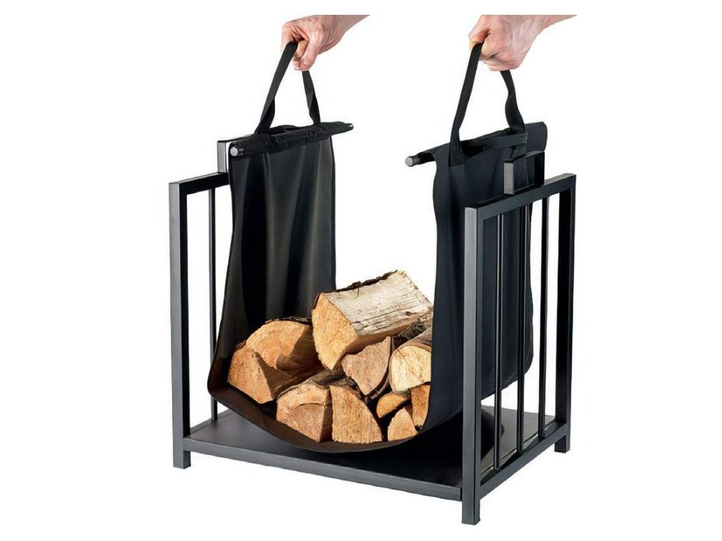 Koš na dřevo s plátěnou taškou.• barva černá• výška 505 mm• šířka 510 mm• hloubka 370 mm