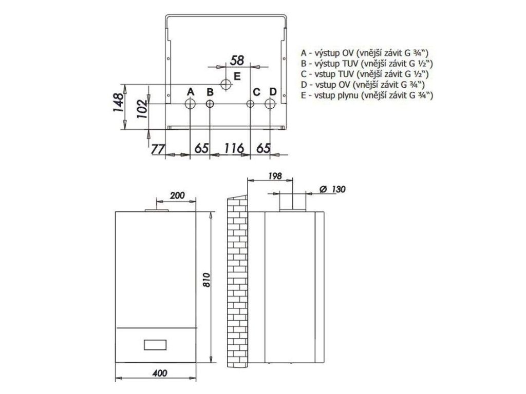 Mora-Top Kotel plynový závěsný s průtokovým ohřevem TUV Helios ECO 18KK, 7,3 - 20 kW, komín