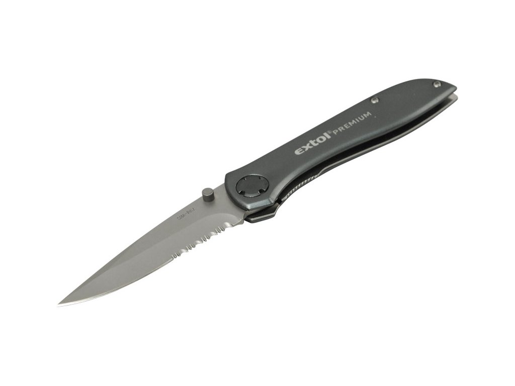 vroubkování čepele pro snadnější řezání určitých typů materiálů, může sloužit i jako malá pilka