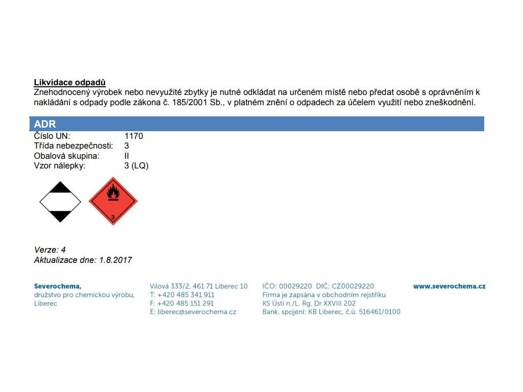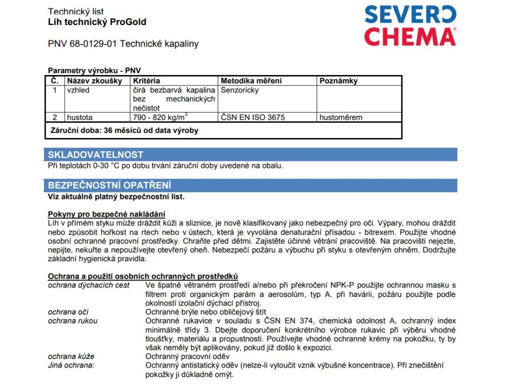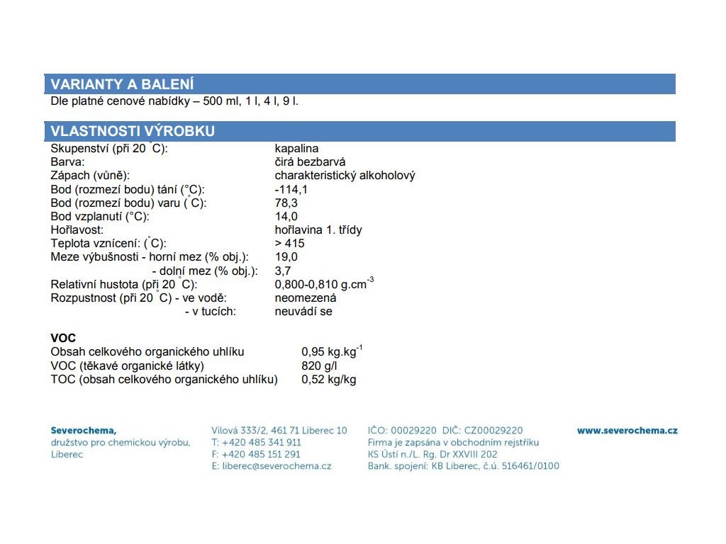 Je určen do lihových vařičů, pro technické účely, k ředění lihových nátěrových hmot a k čištění některých typů skvrn na textilu.