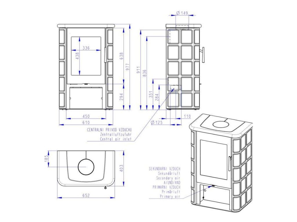 • sklo dvířek na vnitřní straně oplachováno přívodem sekundárního vzduchu což zabraňuje usazování nečistot