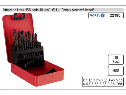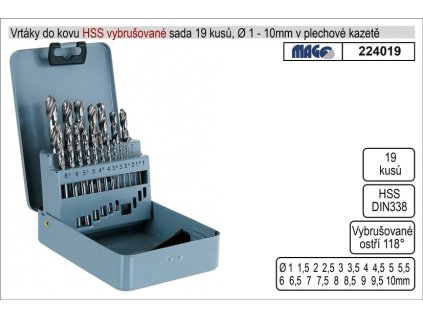 EXTOL CRAFT 11190 vrtáky do kovu, sada 19ks, O 1-10mm, HSS ...