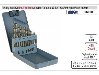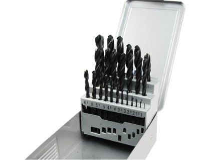 V05071 Sada vrtáků do železa, 1-13mm, 25ks, v plechovém pouzdře.