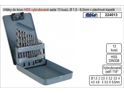 Vrtáky HSS univerzální, šestihranný úchyt 13ks/sa (1,5 - 6,5 mm)