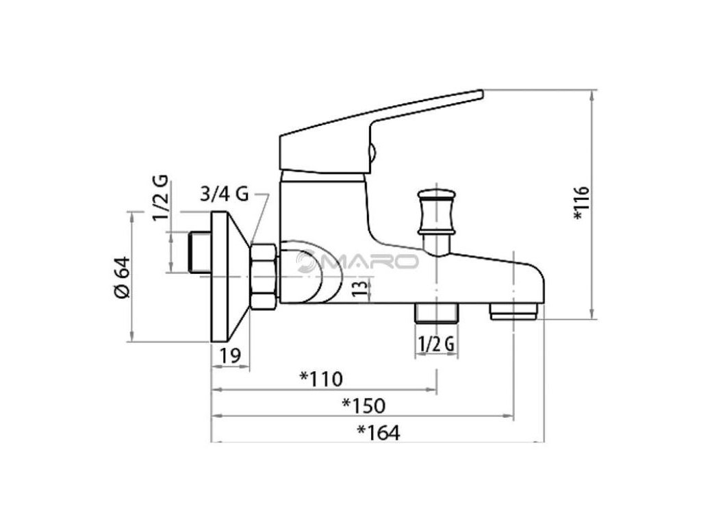 Smart10 Zina Baterie vanová nástěnná rozteč 150 mm, bez příslušenství, chrom