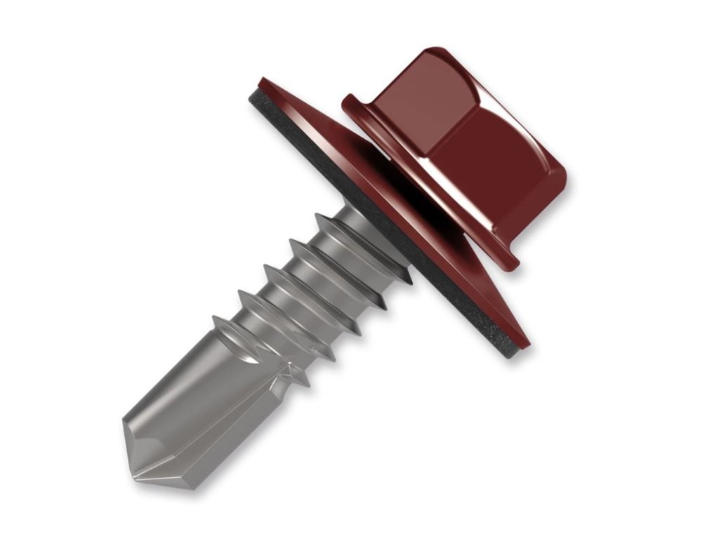 Šroub samovrtný (farmářský) 4,8x19 s podložkou EPDM (RAL 3009) červená dřevo/plech